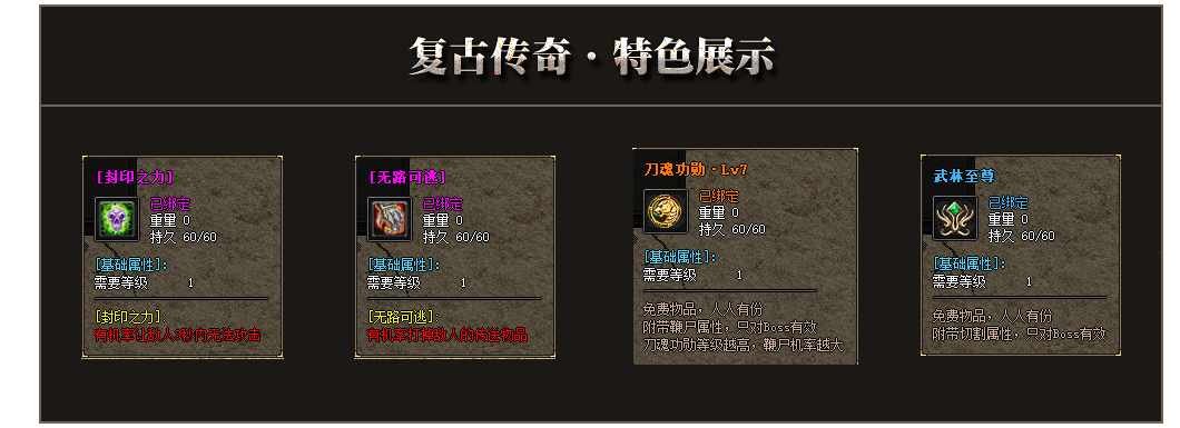 - [关于玩法]本服是长期复古沉默版,前期升级简单,后期升级较难